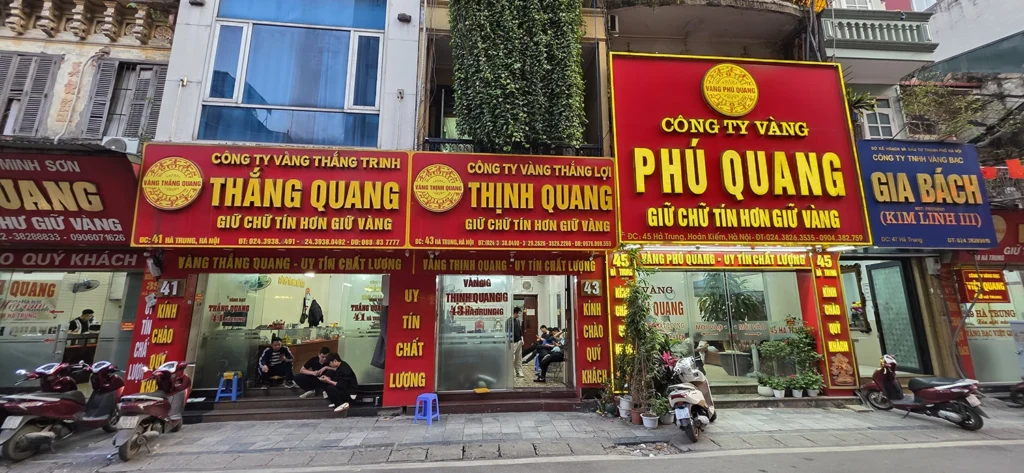 La referencia más conocida es la calle Ha Trung, cerca del casco antiguo. Está llena de joyerías y es donde suelen ir también muchos vietnamitas a cambiar moneda. La joyería del número 27 de esta calle es una de las que ofrecen mejor cambio. Algunas personas también cambian en la calle Hang Bac, aunque suele estar más orientada a turistas.