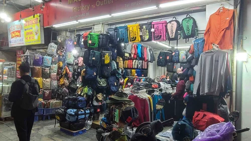 2. En esta calle hay varias tiendas de mochilas y maletas. En una de estas tiendas regateé una mochila The North Face de tamaño medio preciosa y de buena calidad para mi padre.